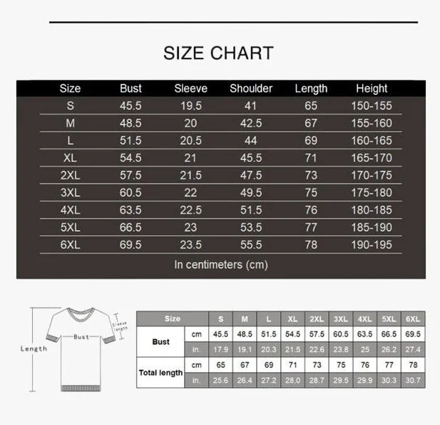 | Sizes run small | S, M, L, XL, 2XL, 3XL, 4XL, 5XL, 6XL |