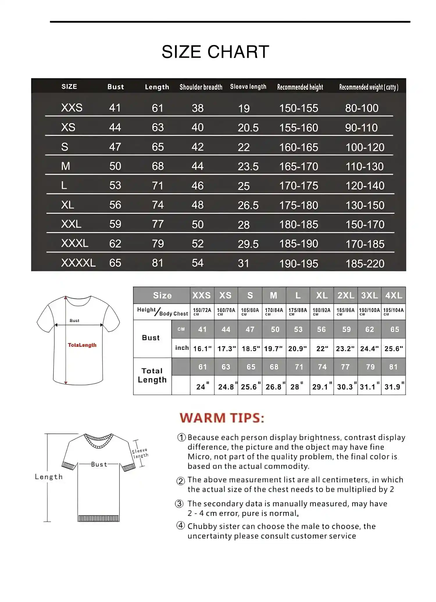 Sizes: “XS”, “S”, “M”, “L”, “XL”, “2XL”, “3XL”, “4XL”