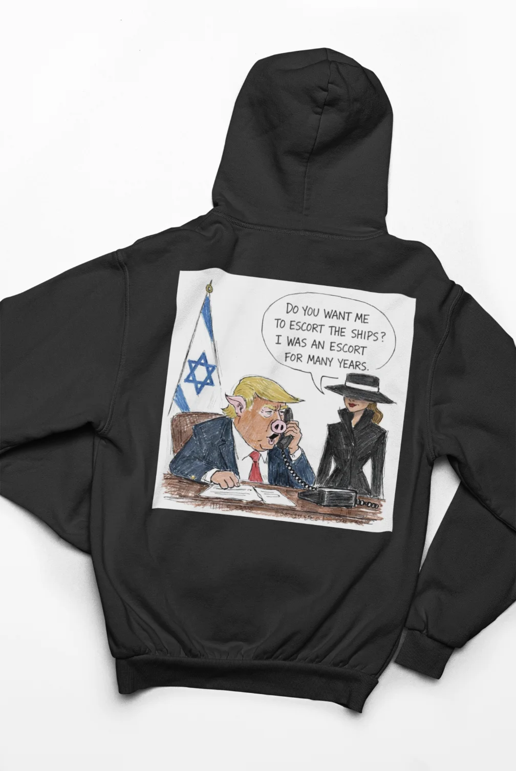 Back angleblack hoodie with anti-trump design