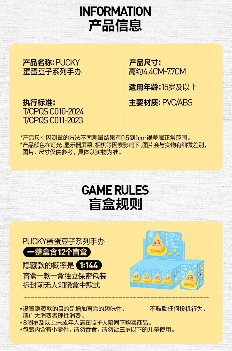 1 random figure from the PUCKY: Egg Beanie Series — factory-sealed and guaranteed 100% authentic.
